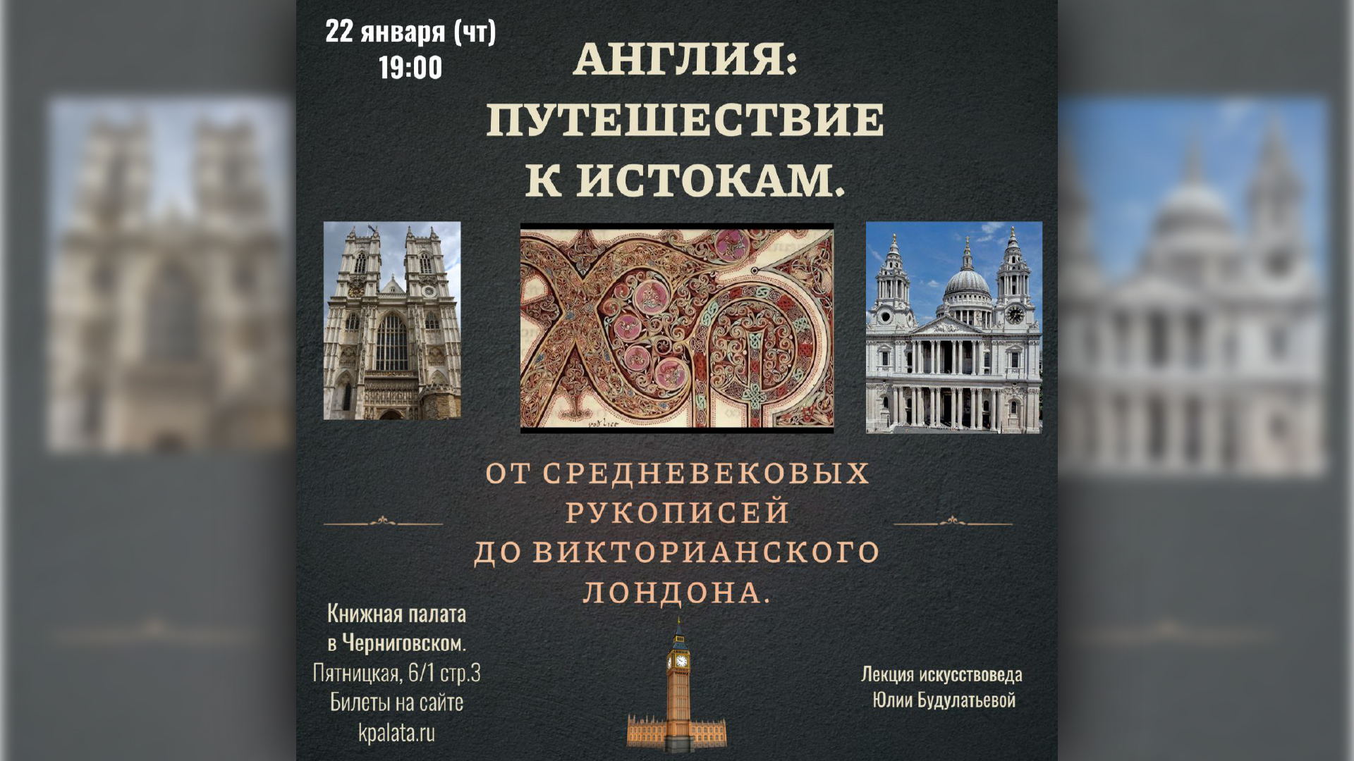 Приглашаем вас на лекцию-путешествие вглубь веков. Мы проследим, как складывался уникальный облик английской культуры — от первых манускриптов до символов XIX века.
